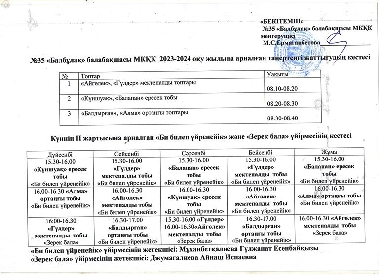 Қосымша сабақтар кестесі 2023-2024 жыл